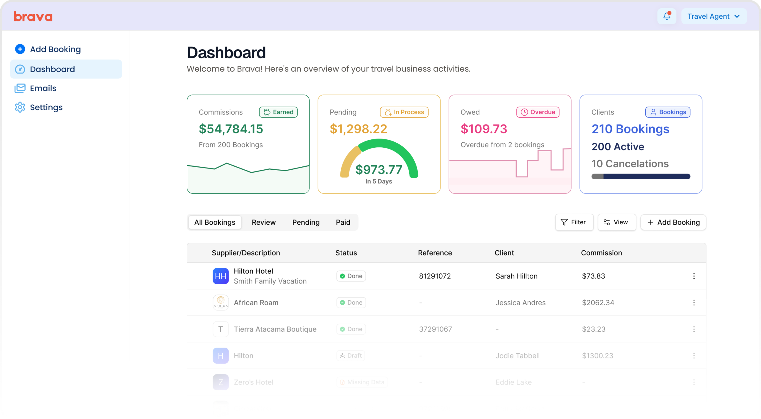 Brava was a commission-tracking platform for independent travel advisors in a trust-poor industry.
