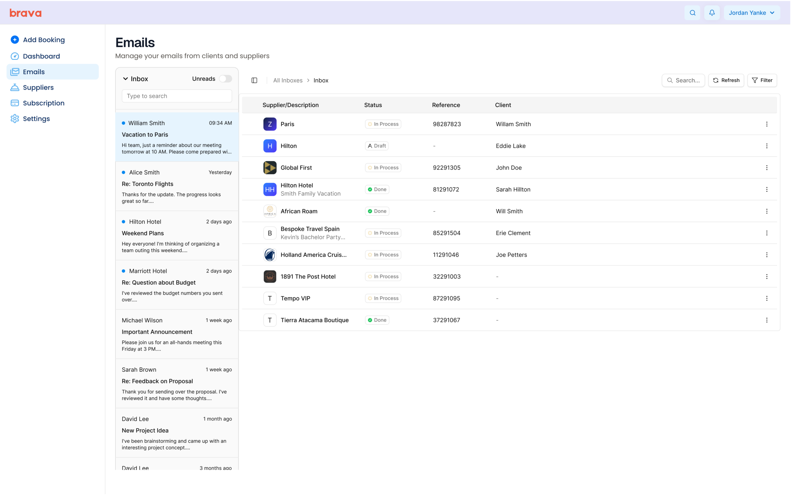 Once suppliers were introduced, it became obvious that discoverability would matter next. Advisors wanted to search across suppliers, bookings, and communications in one place.